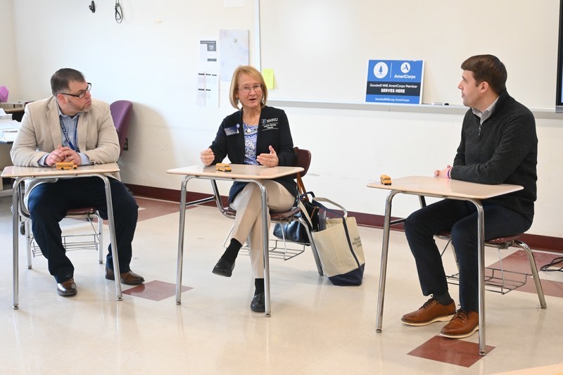 In March as part of AmeriCorps week, U.S. Rep. Chris Pappas visited Memorial High School to get a first-hand look at the program in action. During his visit to Memorial, Rep. Pappas had an opportunity to observe current program participant Zach Gitschier teaching a math class. Later, Gitschier and current Memorial teacher Tanya Larochelle, a graduate of the program, discussed the benefits with Rep. Pappas during a roundtable.