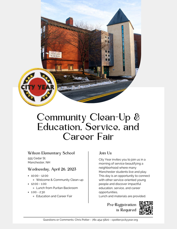 MANCHESTER – Join with City Year to make an impact during April break! Students are encouraged to attend a community service project and Education, Career, and Service Fair with City Year New Hampshire on Wednesday, April 26 at Henry Wilson Elementary School.